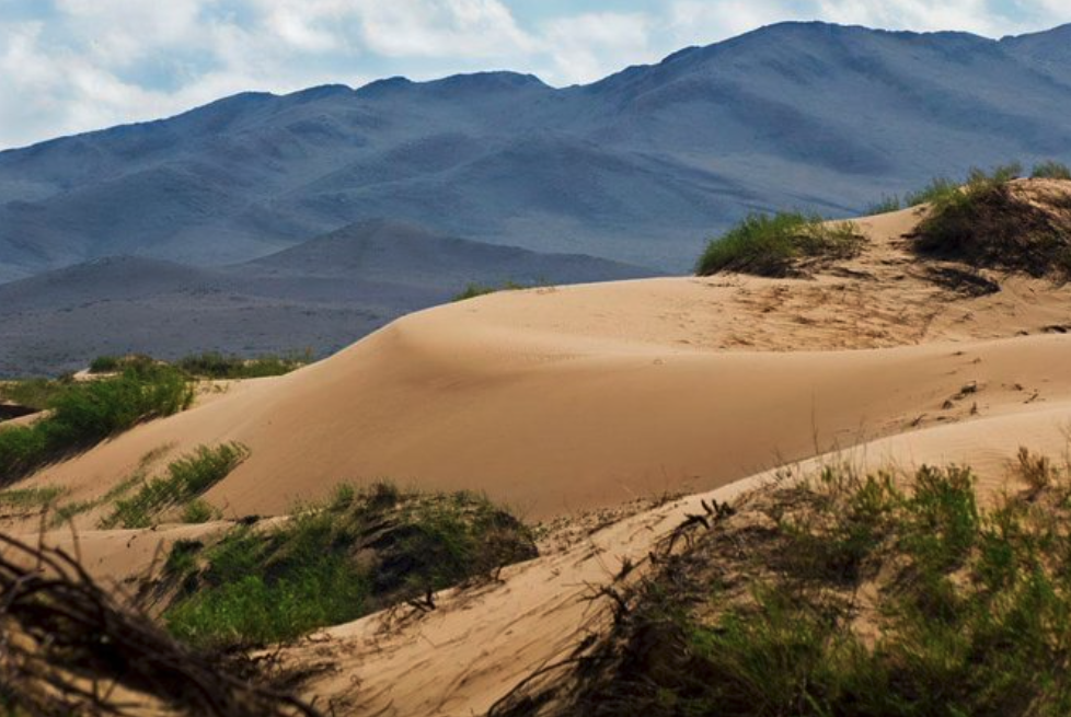 Tagesetappe quer durch die wunderschöne Südgobi entlang des Sandmeeres und durch das schroffe Altaigebirge. Die riesigen Sanddünen erreichen über 800 Meter Höhe und sind auch als „singende Dünen“ bekannt. Das Sandmeer hat eine Länge von 100 Km und eine Breite von 12 Km. Ein einzigartiges Gebirge aus weißem Sand, eingebettet in die schwarzen Felsgebirge des Ost-Altai. Erklimmen Sie eine dieser Dünen und Ihre Mühen werden mit einem traumhaften Blick belohnt. Heute etwa 180 Km/ 6 Std Fahrt.