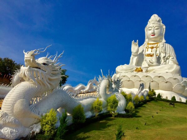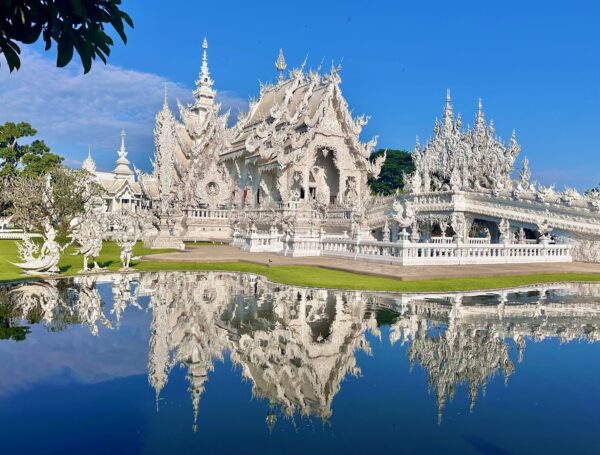 Frühstück – Fahrt via Mae Rim (Tempelkomplex Wat Pa Daraphirom) und Thaton (Japanese Village) nach Chiang Rai – Besichtigung Wat Ron Khun (Weißer Tempel) – Transfer zum *****-Hotel The Riverie (DLX Garden Zimmer)